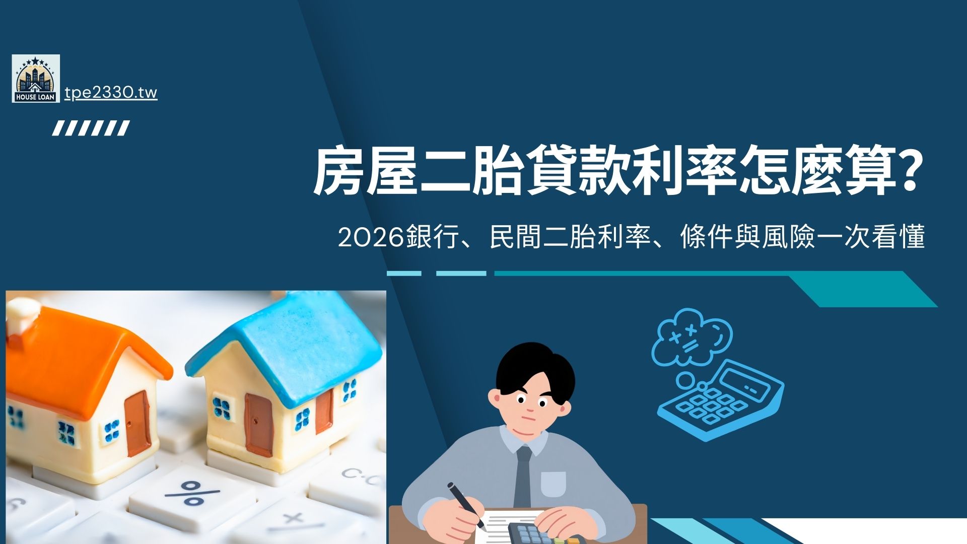 房屋二胎貸款,指的是在房屋已設定第一順位房貸的情況下,再向另一家銀行或融資公司申請第二順位抵押貸款(又可稱為二胎房貸)。由於清償順序排在第一順位之後,承作機構承擔的風險本來就比較高。也因此,房屋二胎利率一定會高於一胎房貸利率,真正該比較的重點,不是「最低利率是多少」,而是在你的條件下,什麼利率才算合理。